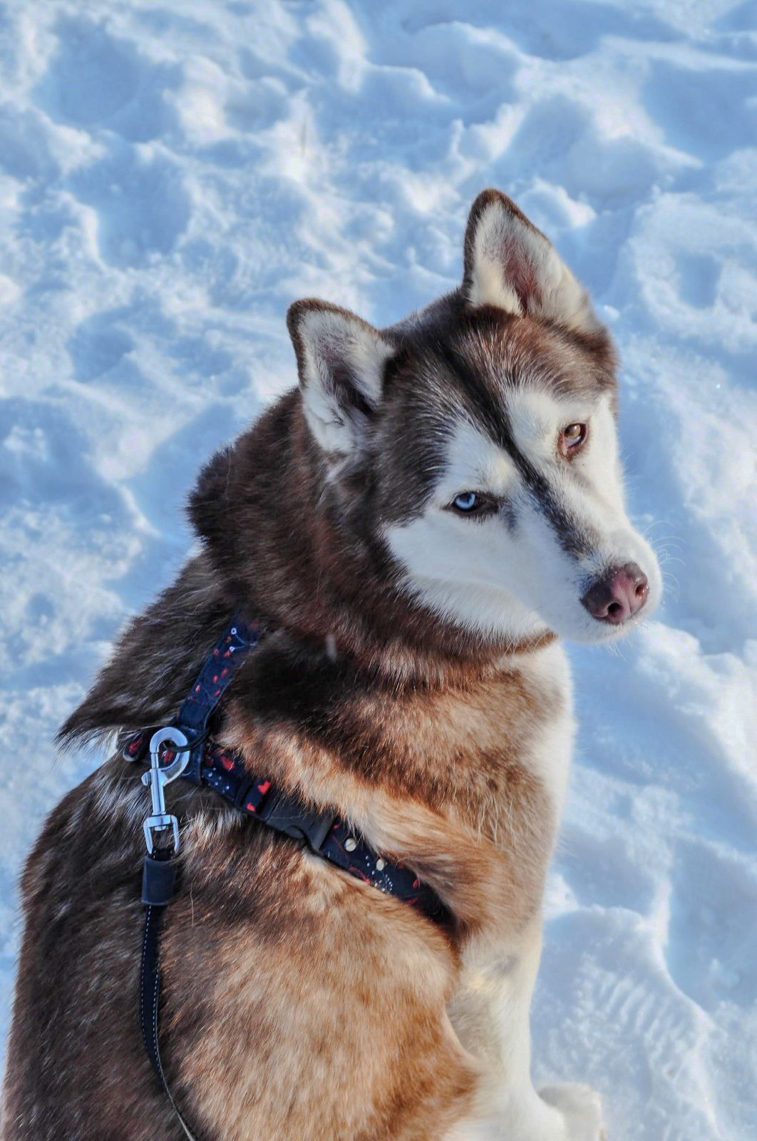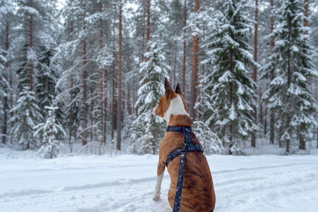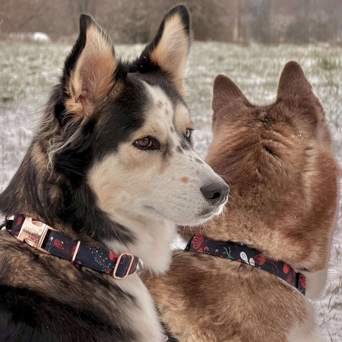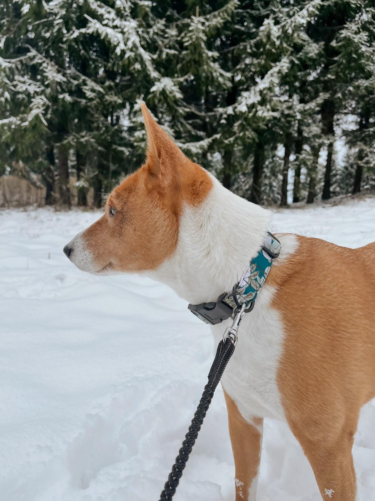Amūrs wearing personalised " winter forest" collar